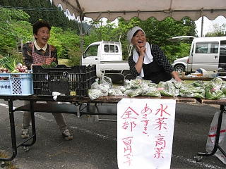 山菜を売っている美人のおかあさん